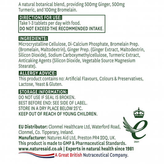 Natures Aid Ginger, Turmeric & Bromelain 60