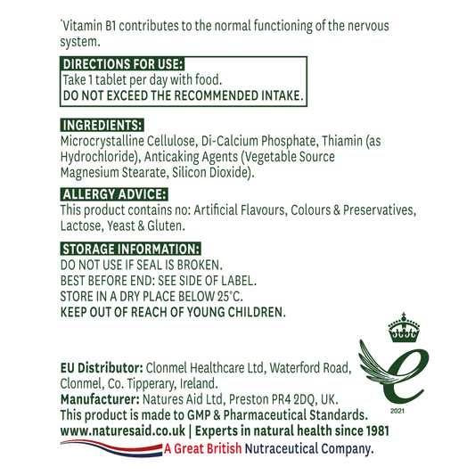 Natures Aid Vitamin B1 Thiamin 100mg 90