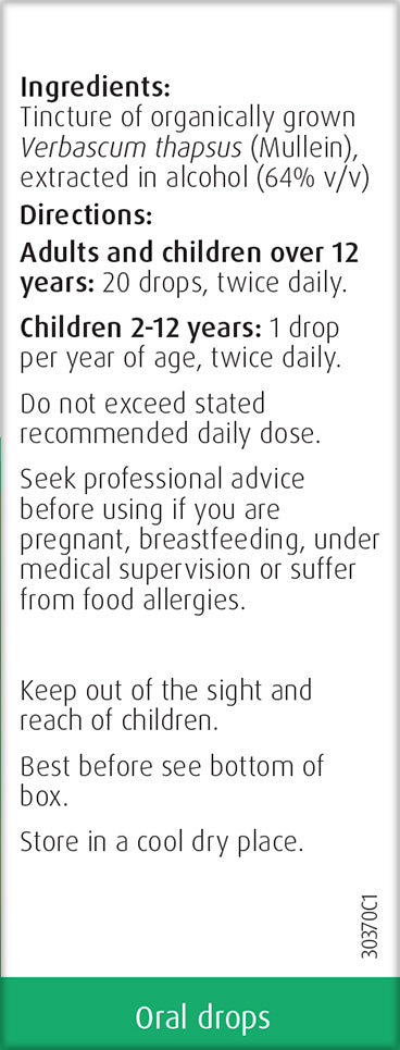 - A.Vogel Mullein oral drops is made from organically-grown fresh Mullein leaf and flower.