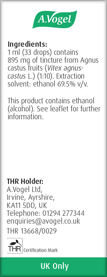 A.Vogel Agnus Castus drops are a traditional herbal remedy containing extracts of the fruit of the Agnus castus tree. Licensed as a traditional herbal medicinal product under THR.
