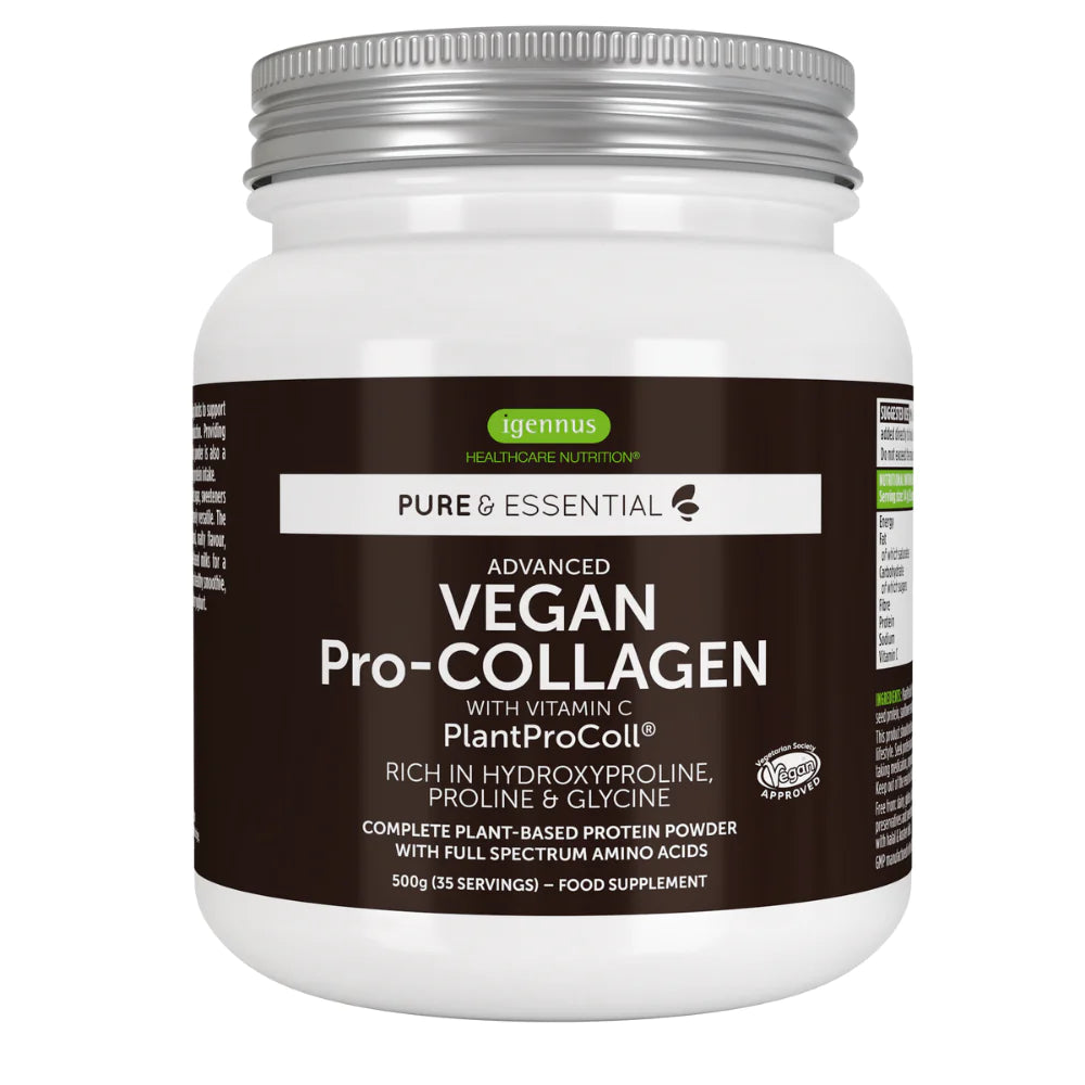 PlantProColl ® plant-based peptide blend: brown rice protein, pea protein, pumpkin seed protein, sunflower seed protein, glycine, hydroxyproline, proline; ascorbic acid (vitamin C).