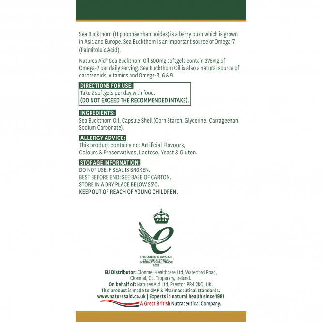 Natures Aid Sea Buckthorn Oil 500mg 60