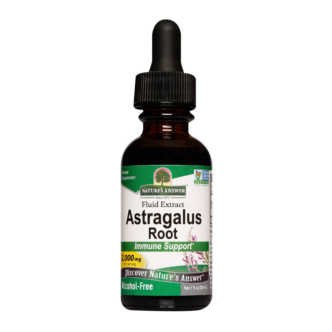 Nature's Answer Astragalus Serving Size: 2 mL (approx. 56 drops) Servings Per Container: 15. Amount Per Serving: Austragalus (Astragalus membranaceus) Root Extract 2,000 mg (2 g). Other Ingredients Vegetable glycerin, purified water.