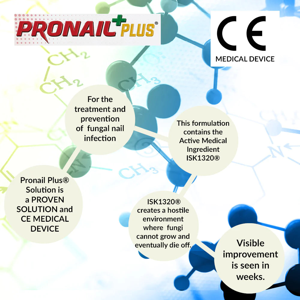 Formulated with the active medical ingredient ISK1230®. Pronail Plus is a proven CE registered Medical Device that provides the solution.