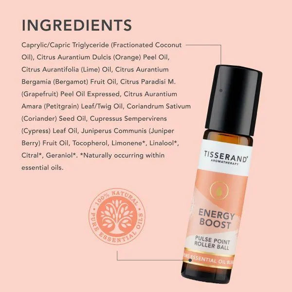 A motivating blend of Orange, Lime & Grapefruit 100% natural pure essential oils to help supercharge your energy levels, for when you need added vitality on the go. Perfect for popping in your pocket to pep up your senses whenever you need it most.