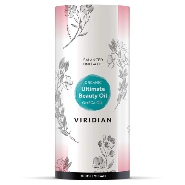 Viridian’s 100% Organic Beauty oil is a highly nutritious oil designed for everyday use. This balance of veganfriendly omega 3, omega 6, and omega 9 fatty acids come from 100% plant-based ingredients and form the basis for this pleasant-tasting oil.